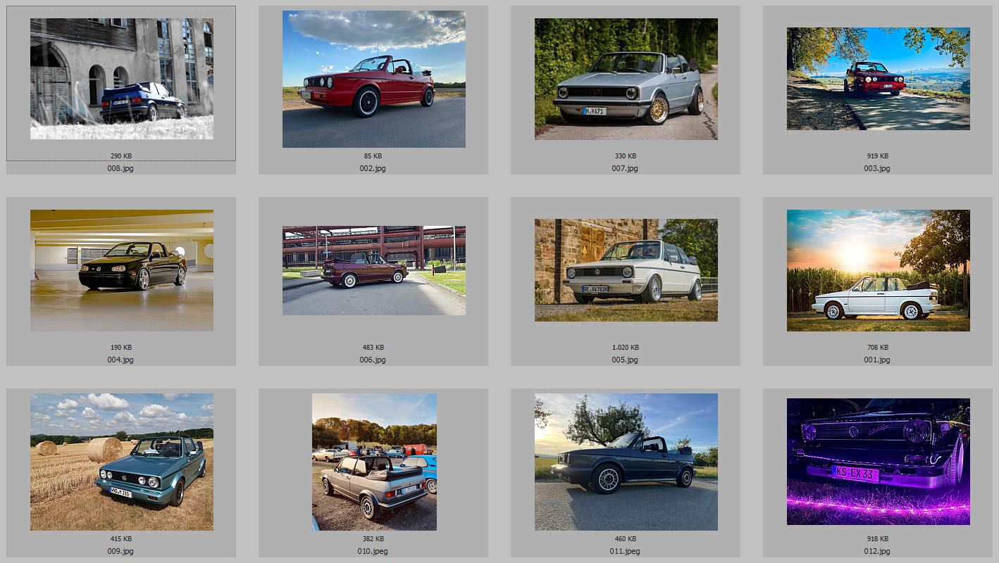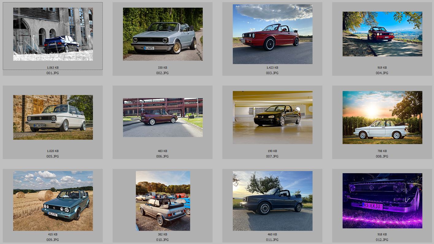 Nur das erste der beiden weißen Golf 1 Cabrios könnte man noch tauschen, z.B. mit dem schwarzen Golf 4 in der Tiefgarage...dann sind nicht 2 weiße Cabrios hintereinander.