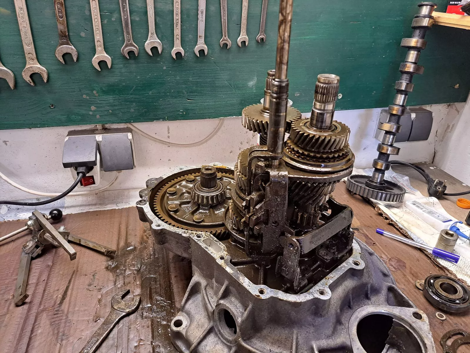 Ich hab Motor und Getriebe gleichzeitig zerlegt. Da gingen mir einfach die Werkbank aus.