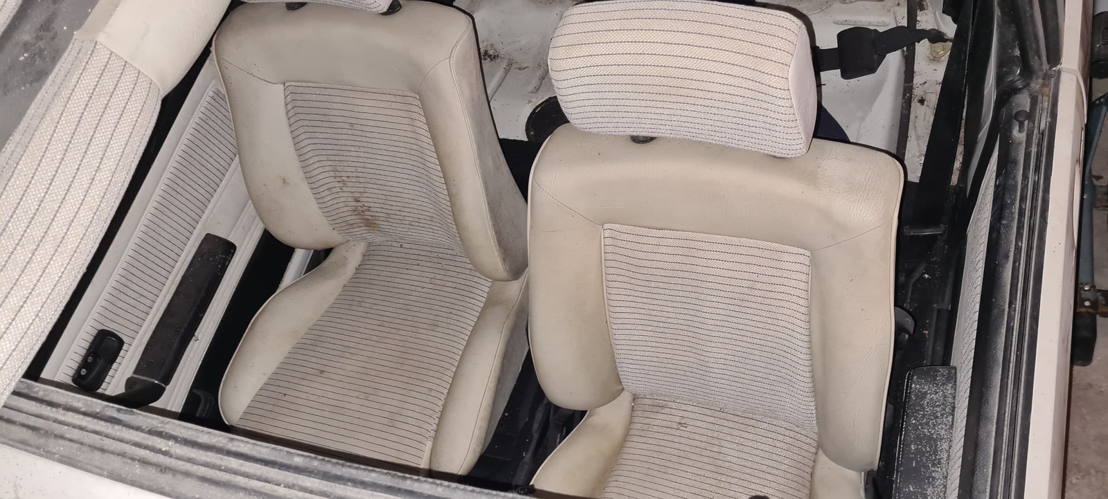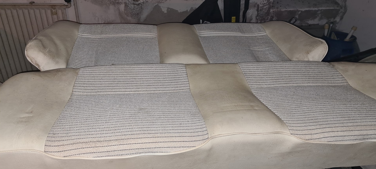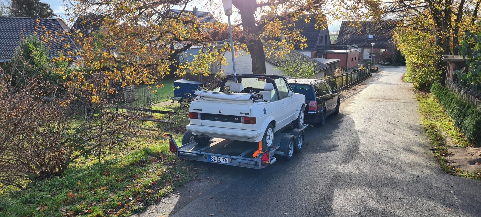 ca. 25 Jahre (1997) stand das Cabrio in der Garage bei einem älteren Herrn hier bei uns im Dorf und nun sollte es weg..... kurz und knapp hatte ich mir das Cabrio angeschaut und schnell zugeschlagen, da Preis und Zustand mehr als Fair war. Leider stand er die zweieinhalb jahrzehnte mit offenem Verdeck, das ist bei Schliss komplett zerbröselt, und vom gestänge bis zum Scheibenrahmen fehlten gut 3cm.... hoffe nicht das dass Gestänge verbogen ist.