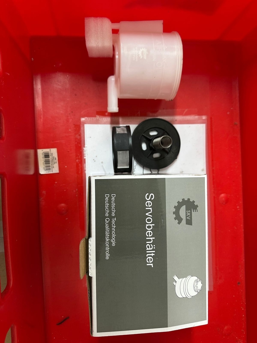 Servobehälter mit perfekter Passung. Selbst die Deckel sind untereinander austauschbar. Auch rot gegen Grün lässt sich tauschen. Die Gummidichtungen auch. Ist im Stück günstiger als die Einzelteile. Nur der Filter ist komplett anders. Der Hilft nur bei Karpfen. Partikelchen fängt der eher weniger. Ich werde mal den originalen ausbauen, reinigen und schauen.