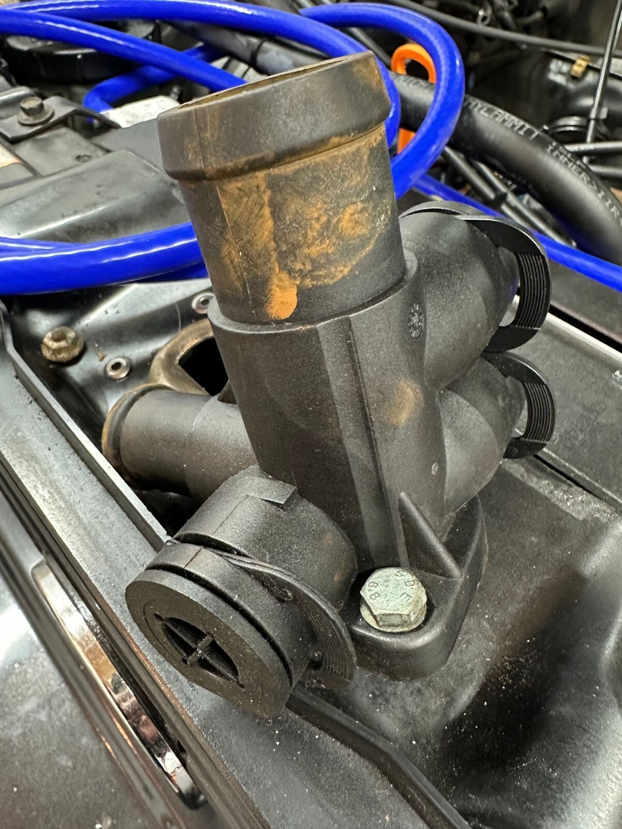 Welcher Flansch? Der nach vorne zeigt mit den beiden Sensoren, ist da noch ein freier Abgang? Oder seitlich am Kopf zum Kühlwasserbehälter hin. Ich habe dort nur einen Anschluss, habe dort aber andere Bilder von Flanschen gesehen, wo seitlich noch ein zweiter schmalerer Abgang zu sein scheint.