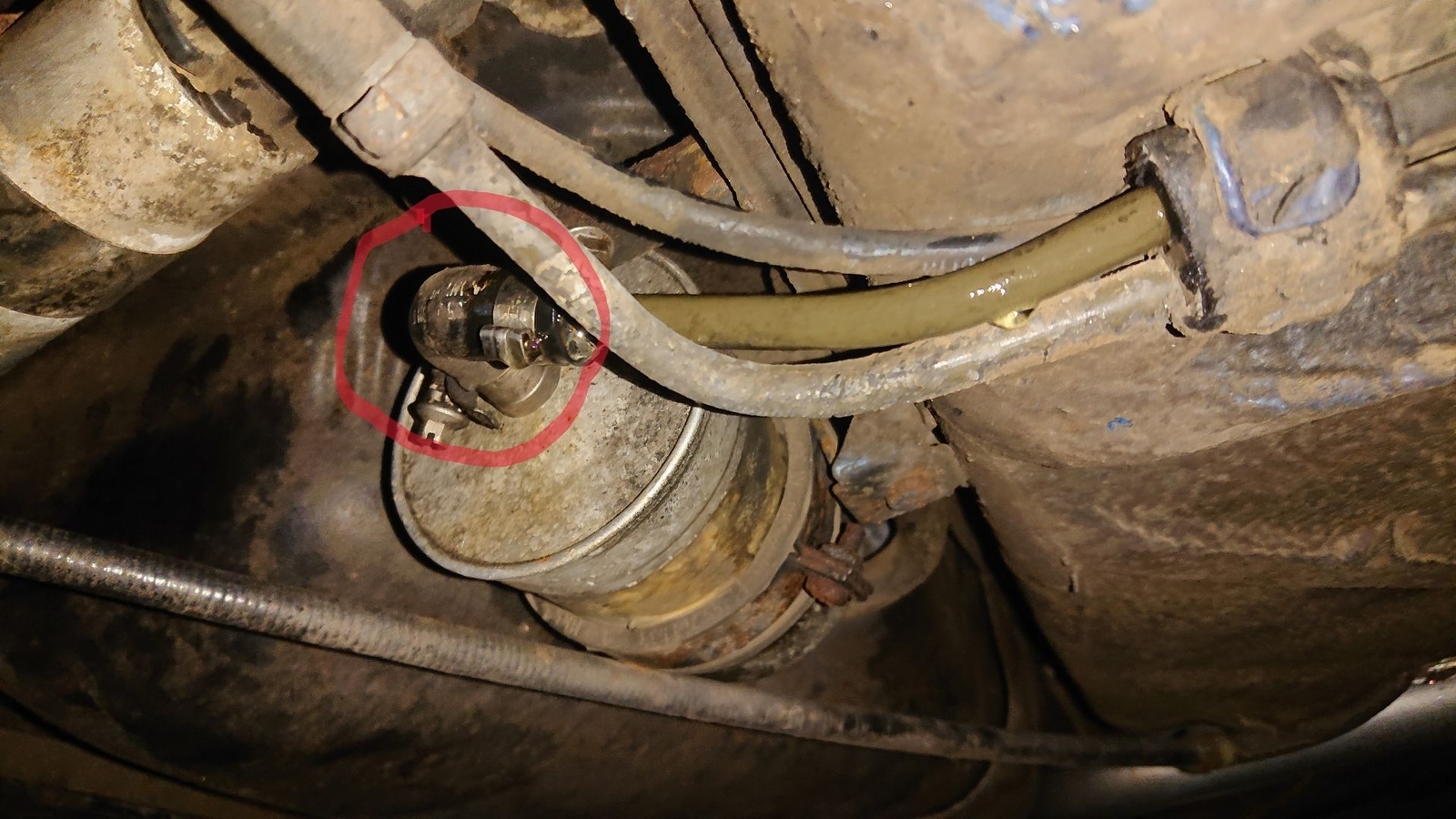 Auto nach längerer Standzeit angemacht und schon "pieselte" er unten rechts Nähe Benzinpumpe /-filter raus,