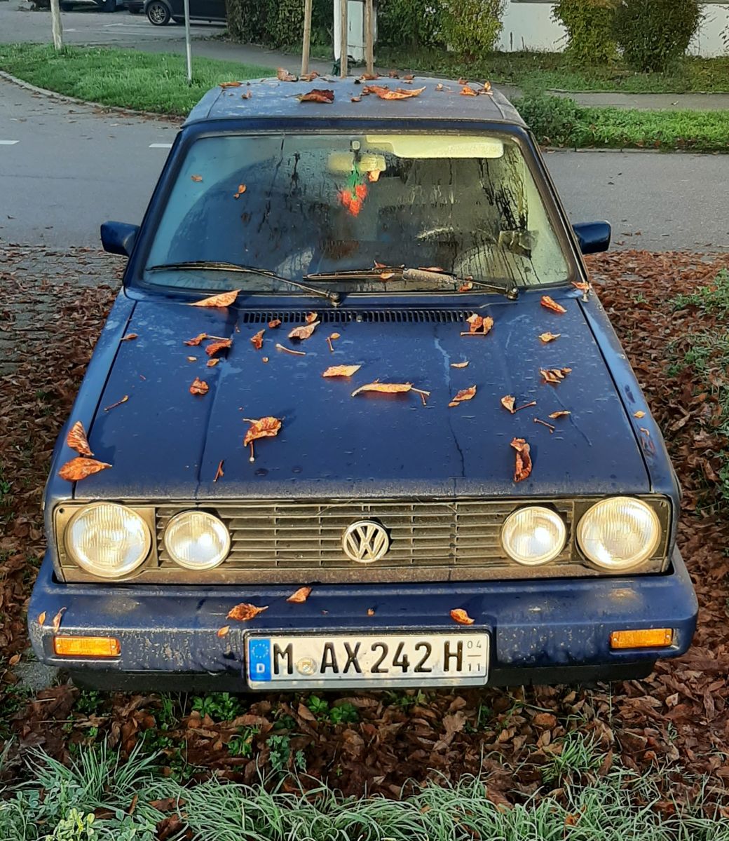 Mit meinem Erdbeerkörbchen bin ich das einzige Fremdfahrzeug am Platz.