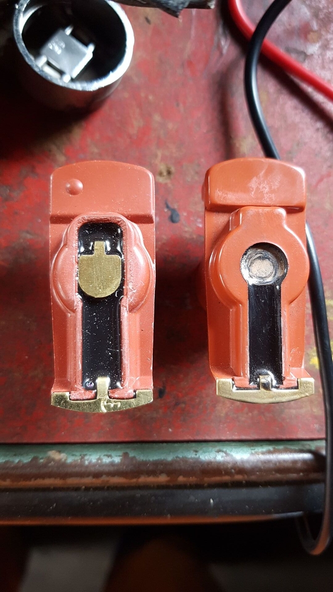 Und den Finger hab ich nochmal gewechselt. Beru mit ordentlich Spiel auf der Welle getauscht gegen einen stramm sitzenden Bosch Finger. Ausserdem hat der Stift der Verteilerkappe immer diese schwarze Lackierung abgerieben. Das doch nicht mehr normal sowas