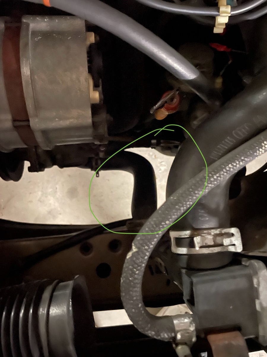 Update: mein Kühlsystem macht wieder Stimmung. Nachdem Udo mir die Anzeige repariert hat, wird deutlich, dass die Temperatur laut Anzeige zu hoch ist. Ebenfalls springt der Lüfter nicht an und der untere Zuleitungsschlauch zum Kühler bleibt kalt (s. Bilder). Der Rest vom Wasserkreislauf ist gleichbleibend warm/ heiß. Heizungskreislauf ebenfalls warm. Wasser verliert er nicht.