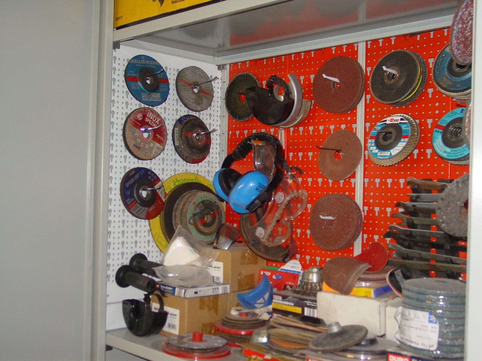 Das, was auf den Arbeitsflächen aktuell noch rumliegt, wurde gerade noch gebraucht (Kabel, Steckdosen, Beschriftungsgerät, Holzöl samt Pinsel...) oder muß noch in die leeren Boxen einsortiert werden.