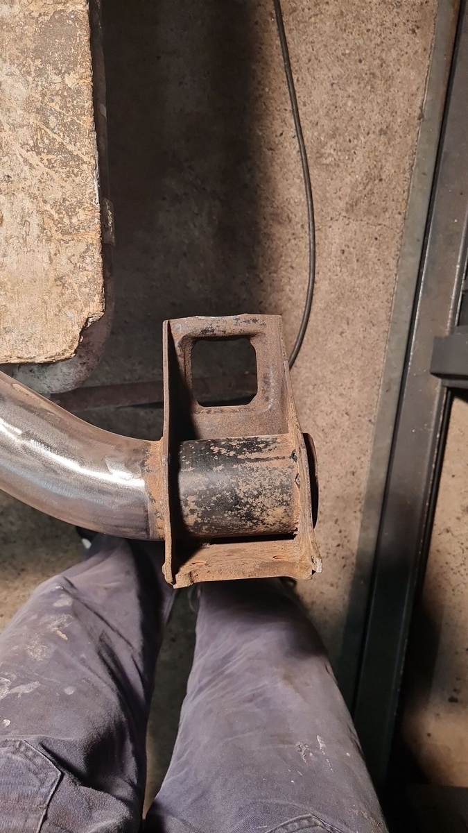 Achse ist gelöst und der Endtopf mit Rohr entfernt, also ist nichts mehr im Weg... Ist der noch irgendwo eingehakt oder geklebt??? Komisch...