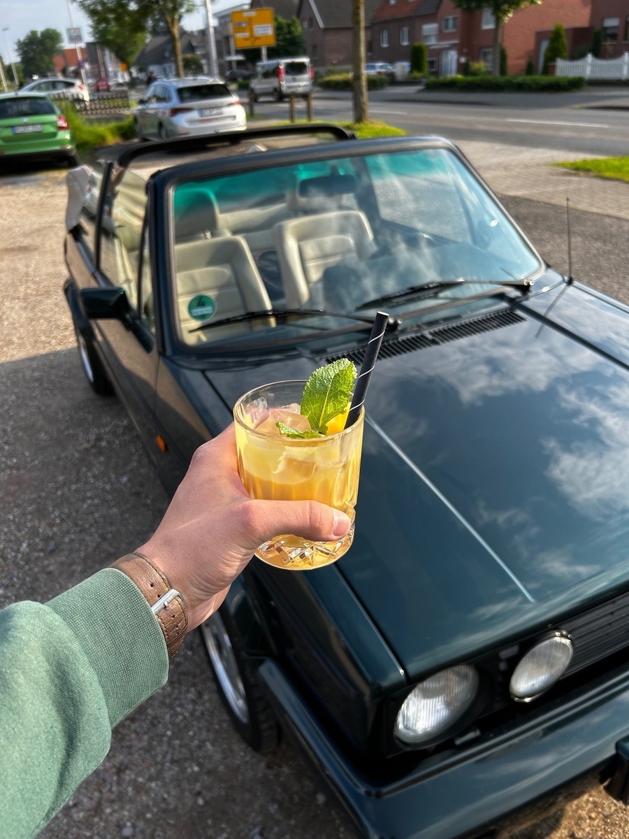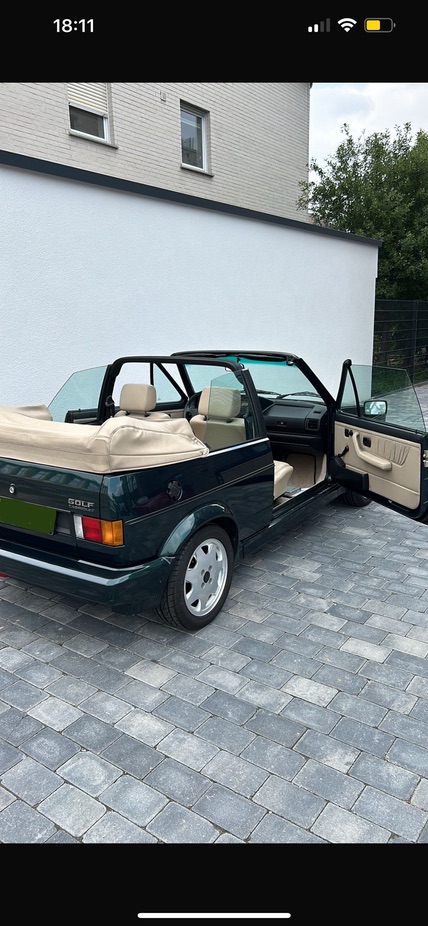Die Wahl ist auf einen Golf 1 Cabrio Classic Line (98 PS) in Metallicgrün mit beigem Leder von 1991 gefallen. Elektrisches Verdeck, alles original, im September 2023 die H-Zulassung erhalten.