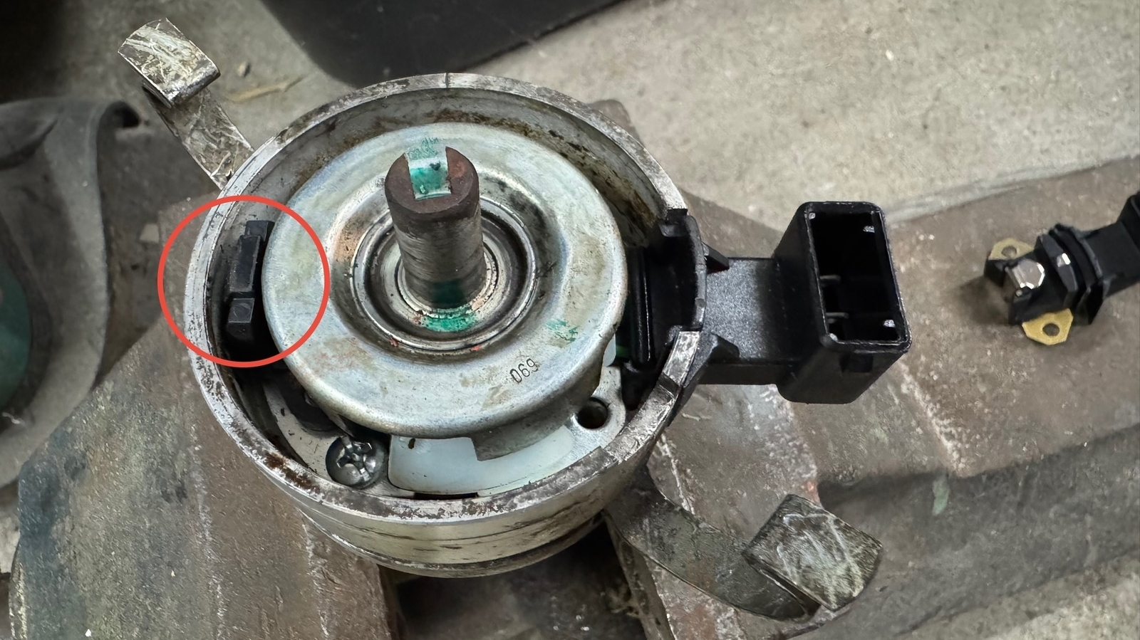Habe also den Zündverteiler ausgebaut und dabei ist mir aufgefallen, dass der von der Werkstatt verbaute Hallgeber sein Hallelement (Lichtschranke) gegenüberliegend vom Stecker hat.