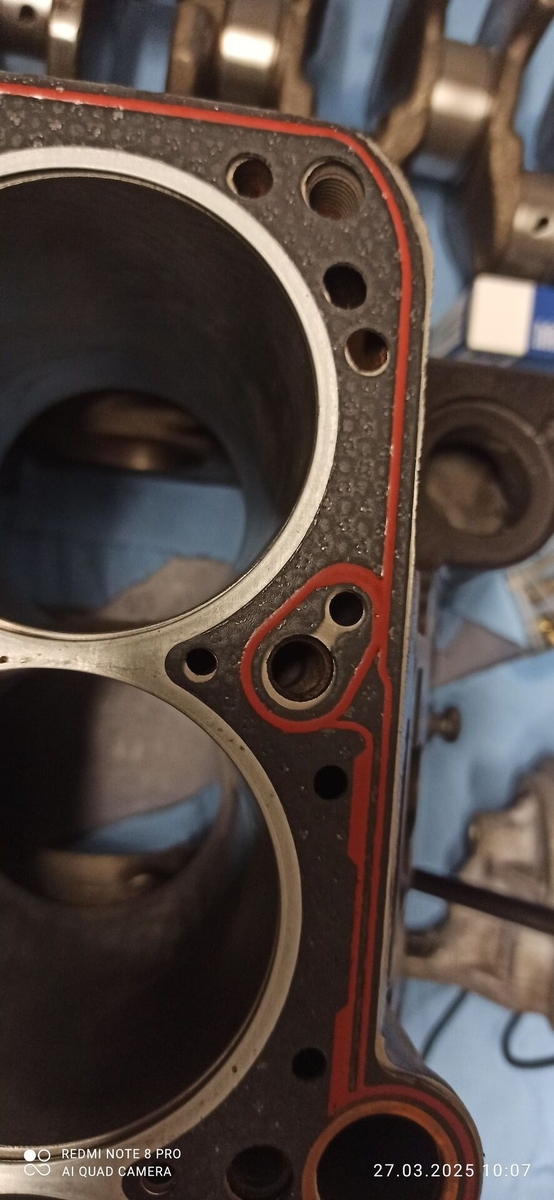 Kann mir jemand sagen wieso Bohrung im Motorblock (vermutlich Ölbohrung) nicht mit dem Kopf übereinstimmt?