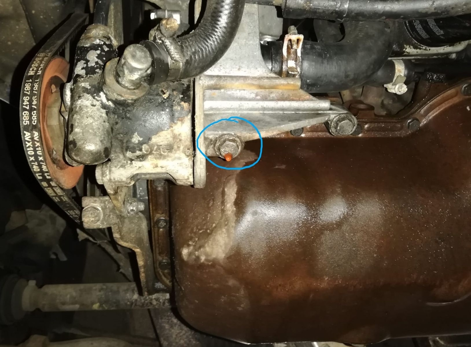 hab heute mal – wie von PHÖNIX empfohlen – das untere Halteblech von der Servopumpe entfernt. Vorher natürlich die Spannschraube gelöst und die Spannung vom Riemen genommen.