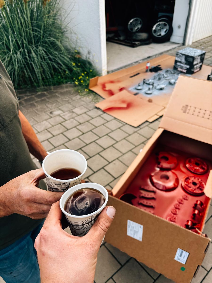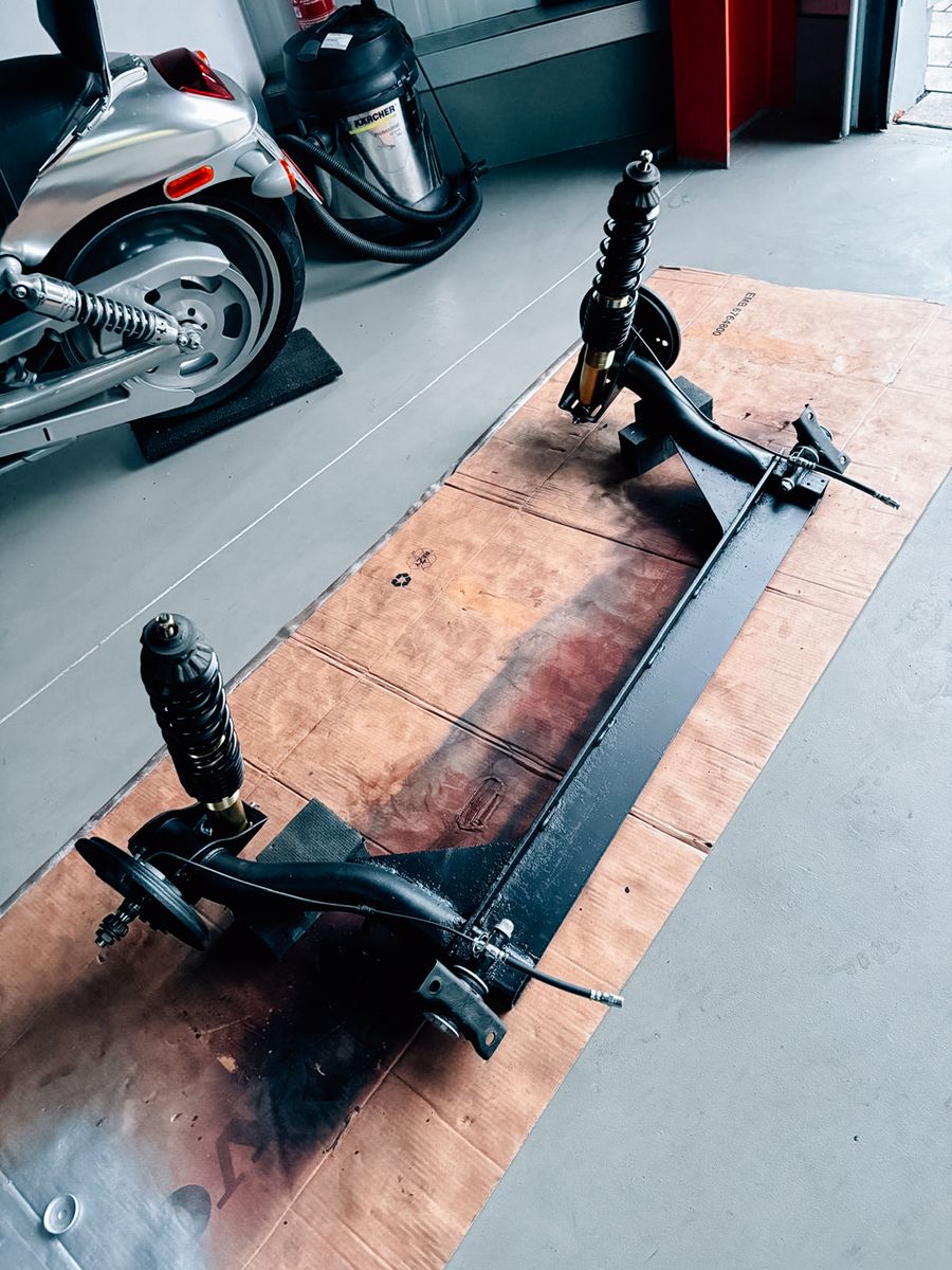 Kalender-Irrtum zu meinen Gunsten! Ich muss mein Auto erst in zwei Wochen von der Bühne runternehmen, nicht schon morgen. Was für ne Steilvorlage, um mich dem nächsten großen Abschnitt zu widemen: dem Fahrwerk.