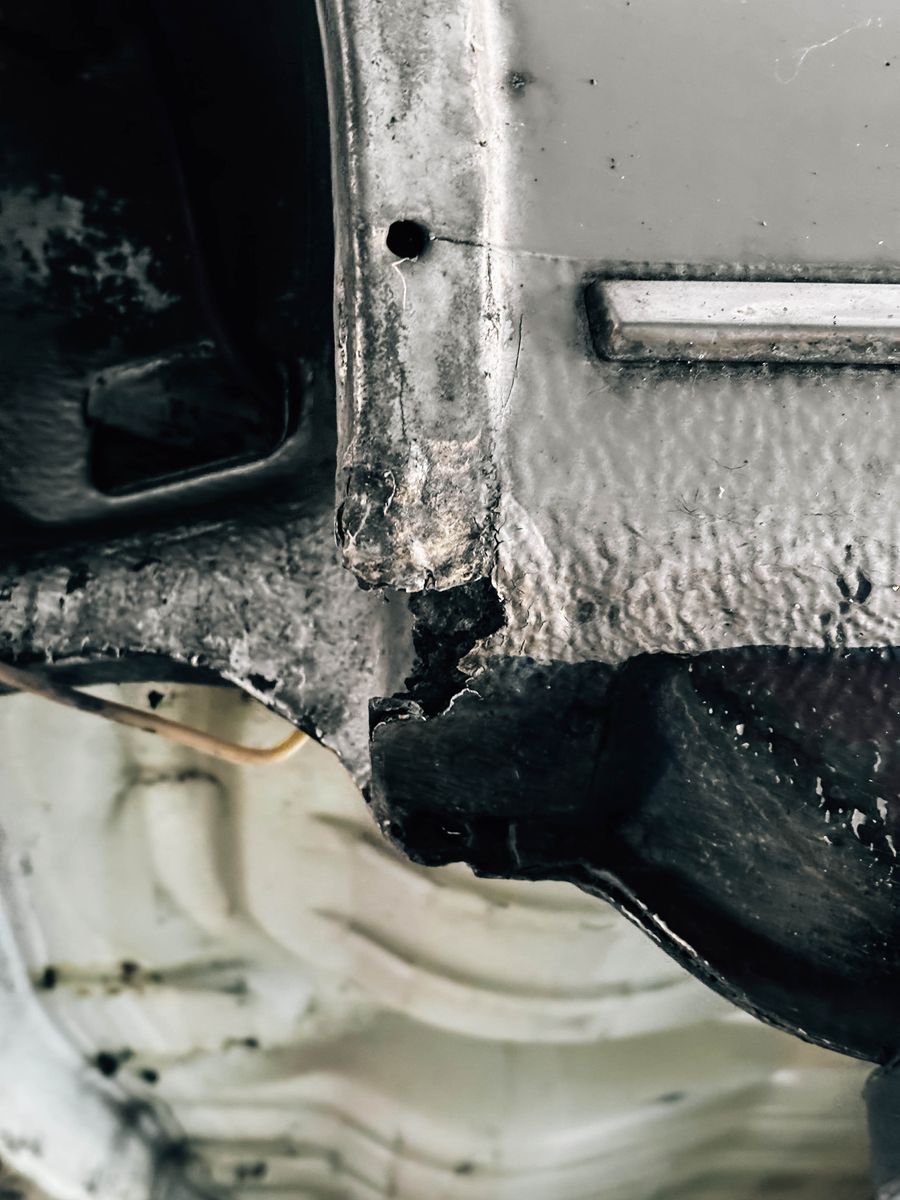 Euch sei präsentiert: das einzige Rost-Loch am ganzen Auto, die Schwellerendspitze hintern rechts, dort, wo die unterste Schraube der Kotflügelverbreiterung sitzt. Sitzen müsste, eher? Seit idem Kauf des Golf Anfang des Jahres habe ich für ein anderes Projekt Schweißen gelernt, das sollte sich doch machen lassen. Ist aber was für später, an den Lack gehts erst am Ende des Projekts.