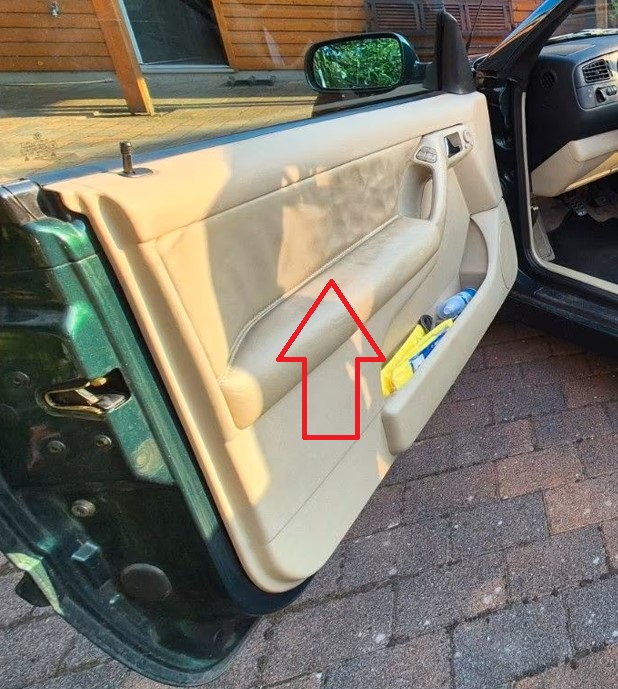 1: Mein Cabrio Bj. 2000 hat am Überrollbügel nicht die Vertiefungen für die Windschott Haken, warum nicht? Das Original ist drin, muss aber mit Spannbändern befestigt werden.