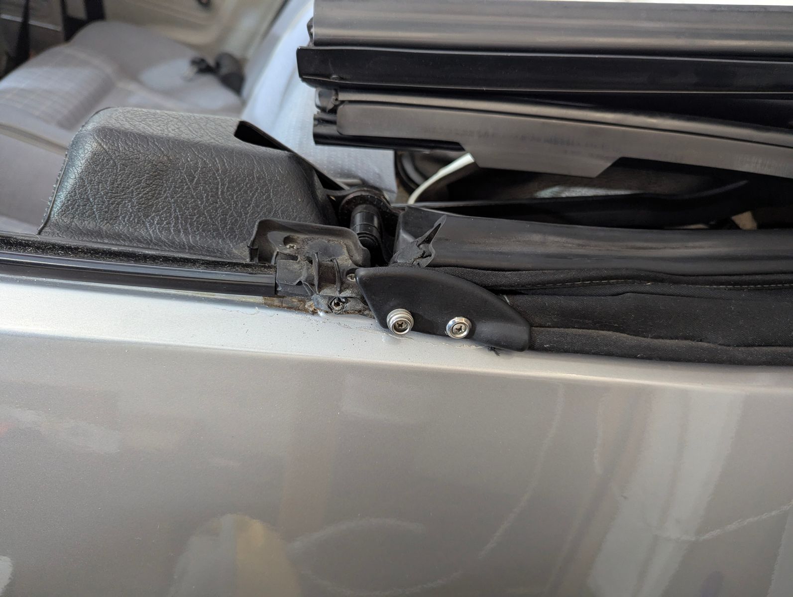 Neinein, das Dach ist nicht neu, und wurde damals auch nicht wirklich gut gearbeitet mE, siehe bspw. das Scharnier, wo die Schrauben irgendwie falsch gesetzt wurden.
