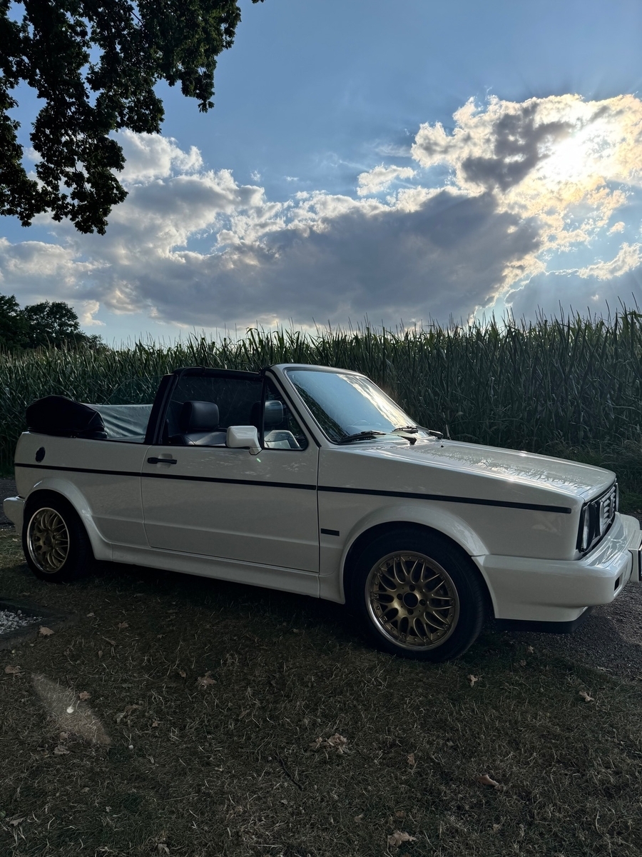möchte mich und meinen Neuen/Alten hier auch mal kurz vorstellen. Ich bin Marius, bin 48 Jahre alt und komme aus Geldern. Seit Mitte August bin ich nun auch endlich stolzer Besitzer eines Golf Cabrio. Das Auto verfolgt mich schon seit meiner Kindheit und jetzt war es endlich soweit. Er heißt Bert, ist Baujahr 04/1991, 2H, Automatik, 155tkm, alpinweiß (L90E) und hat eine H-Zulassung. Das genaue Modell muss ich noch herausfinden, leider fehlt die Historie. Zertifikat bei VW ist angefordert. Er wurde wohl schon einmal neu lackiert und die Innenausstattung ist neu gemacht. Ich vermute alles in Zusammenhang mit der H-Zulassung in 2022. Habe bereits schon einige Artikel hier im Forum gelesen und somit waren die ersten Fragen und Themen bereits optimal abgearbeitet. Freue mich auf den Austausch hier