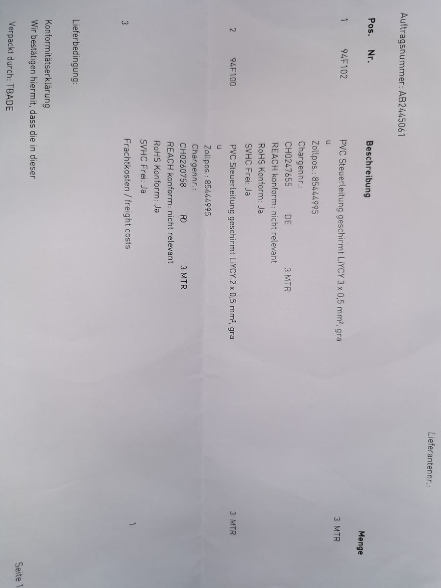 Die Kiste mit den neuen Kabeln ist heute eingetroffen. Alles wird wieder in den originalen Farben und Querschnitten hergestellt. Der Winter kann kommen