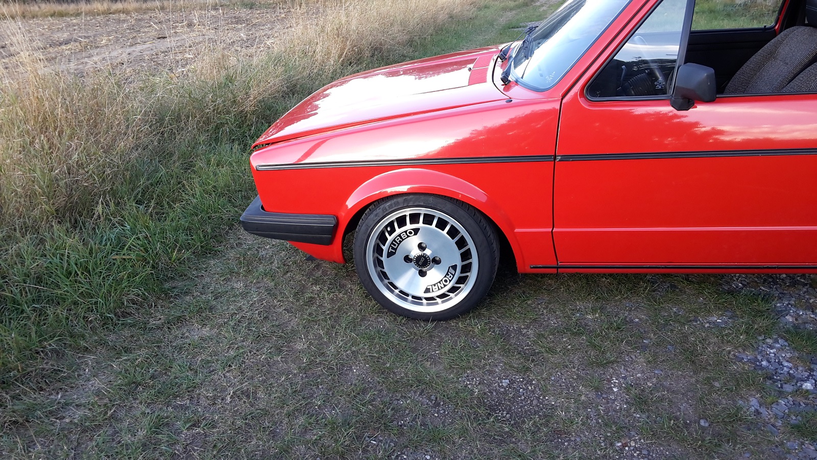Bevor sich jemand über den sonderbaren Titel wundert... die Erklärung folgt, aber der Reihe nach. Irgendwann Mitte der Neunziger wollte ich gerne meinen Trabbi gegen den 90PS Mitsubishi Colt meiner Oma tauschen und habe ihr deswegen ein '89er Golf 1 Cabrio quartett mit 2H Motor "empfohlen". Das Auto war schon einmal mit buntem Momo Lenkrad und weißen Echtlederbezügen aufgehübscht worden.