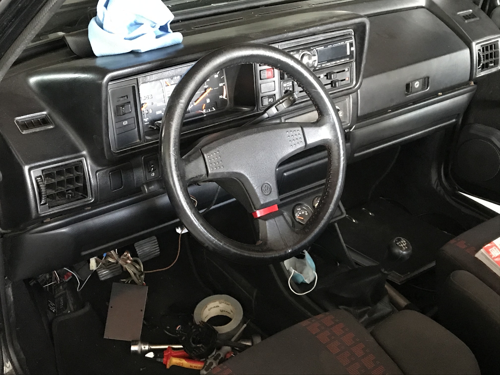 Da den Golf damals keiner haben wollte (vor allem weil der Motor im kalten Zustand sehr schlecht lief und keiner den Fehler finden konnte), habe ich ihn erst in den originalen Zustand zurück versetzt. Ursprünglich war es ein Sportline, welchen ich in einen Porsche Farbton umlackiert habe.