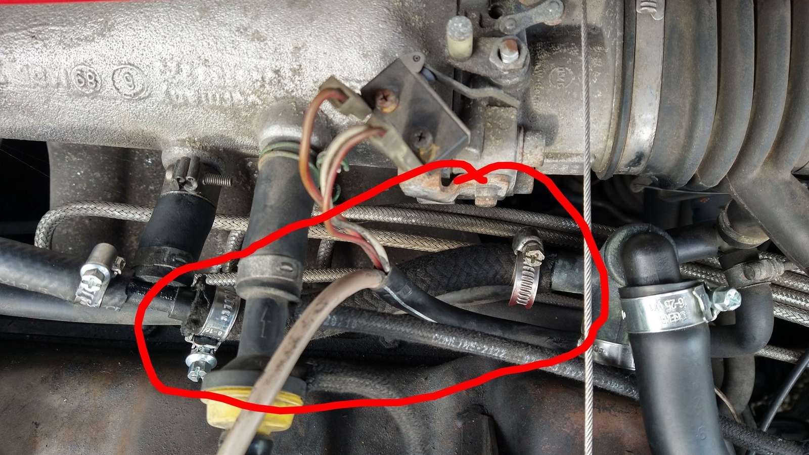 an meinem 89er Sc2 ist der "Luftschlauch" (so heißt er zumindest im gängigen Ersatzteilprogramm) kaputt, weil eingerissen. Daher hatte ich mehrere Probleme mit dem Motorlauf. Ich meine den Schlauch wie auf dem Bild eingekreist, den ich als schnelles Provisorium eingebaut habe.