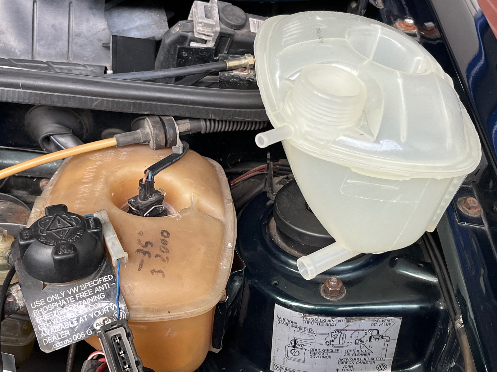 Der neue Ausgleichsbehälter liegt hier schon einbaubereit.