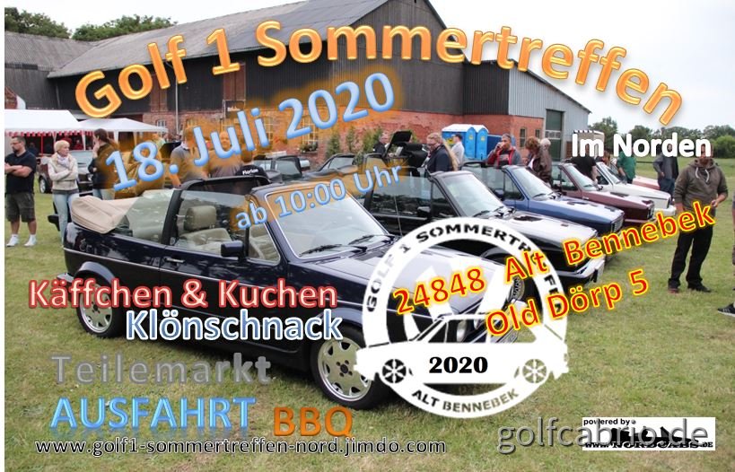 Am 18. Juli 2020 findet das 9te Golf 1 Sommertreffen für alle Golf 1 Limos, Cabrios, 1er Jettas, Caddys und auch Sciroccos der ersten Generation in 24848 Alt Bennebek statt.