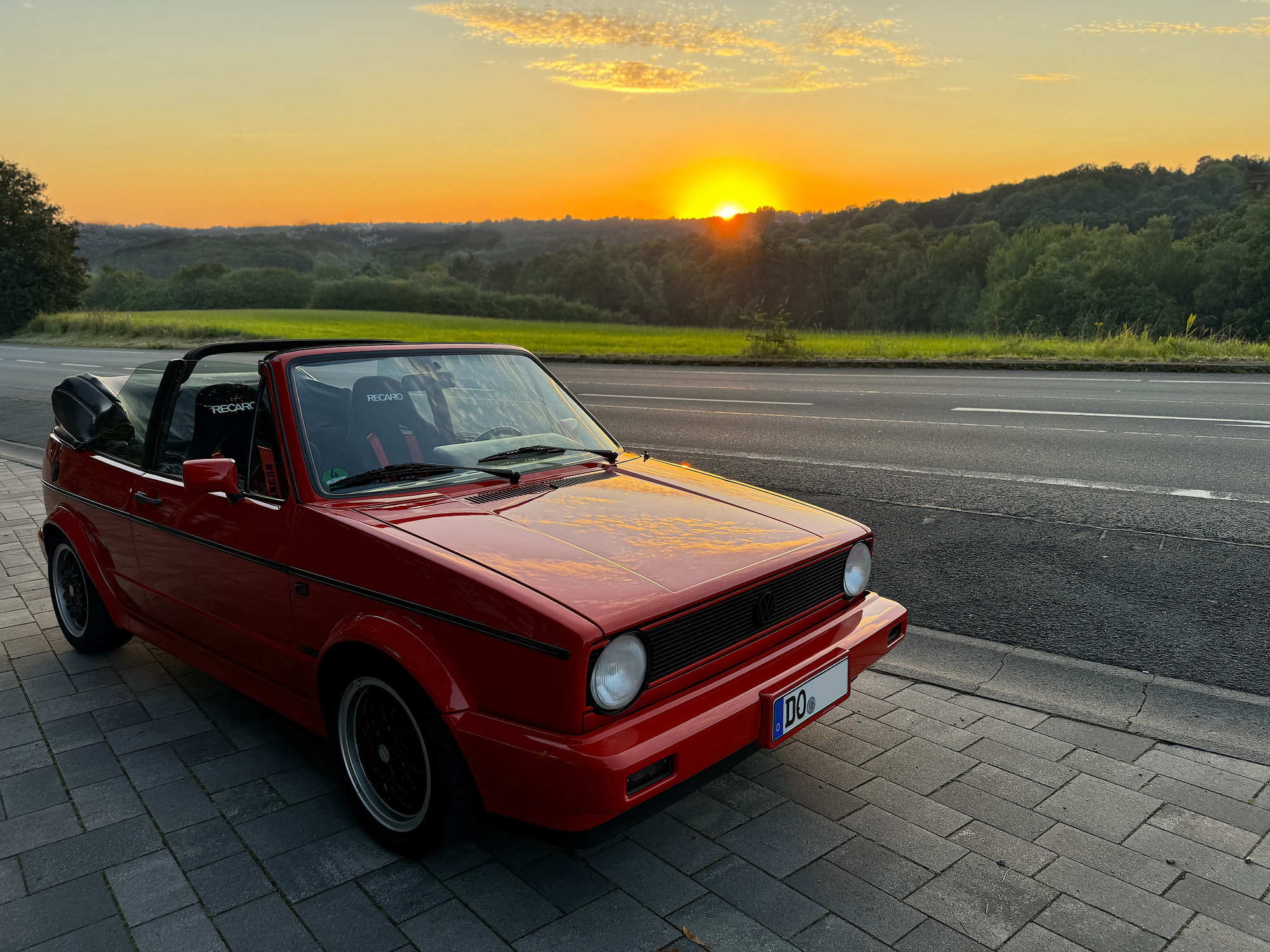 Hab die Stelle eigentlich eher zufällig auf einer Abendrunde entdeckt und vor längerer Zeit schon mal Bilder dort mit der Harley gemacht. Was mit 2 Rädern ganz gut aussah kann ja für 4 Räder auch nicht schlechter sein hab ich mir so gedacht 😎