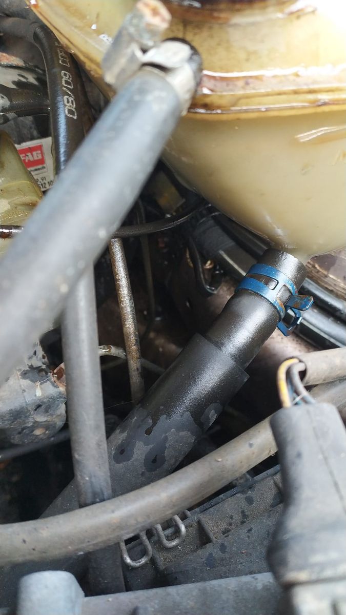 Wenn sich die Kühlflüssigkeit rausgedrückt hat, reinige ich die Stelle (Schlauch innen an der… -